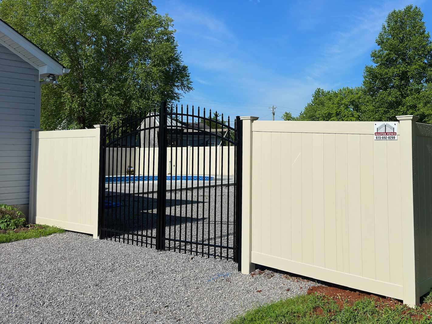 All our custom wood fence gates in Murfreesboro, TN have steel frames to prevent sagging. It also helps in extending the life of the gate. Our selection of aluminum gates and custom vinyl gates in Murfreesboro, TN come in a variety of styles and seven different colors.